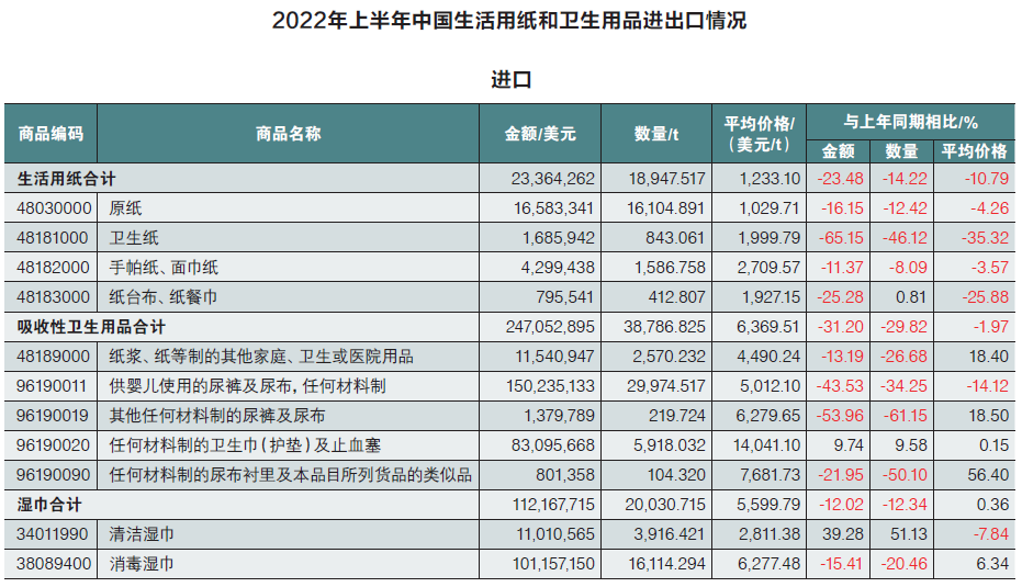 2022年上半年中國(guó)生活用紙和衛(wèi)生用品進(jìn)出口情況